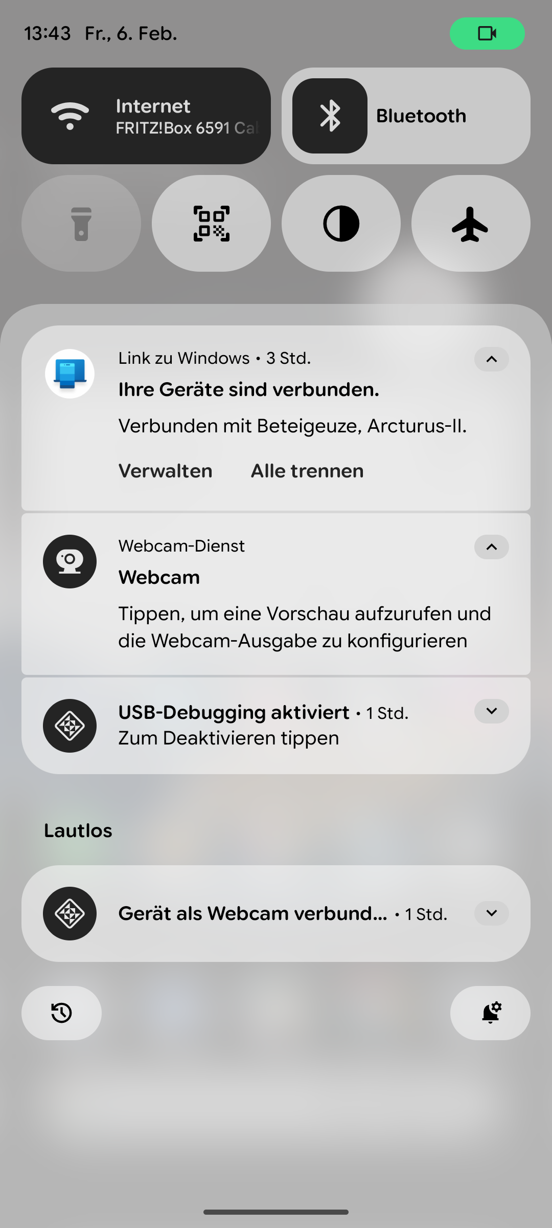- Jetzt erscheint eine Benachrichtigung des Webcam-Dienstes. Tippe darauf, siehst Du das Kamerabild.